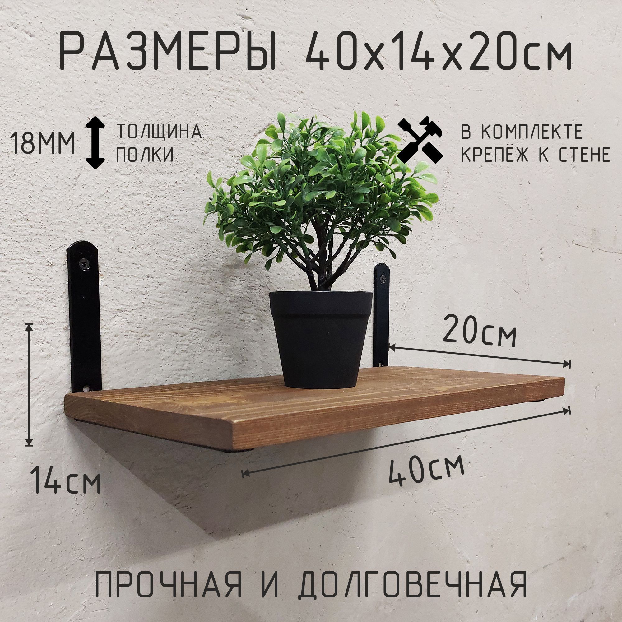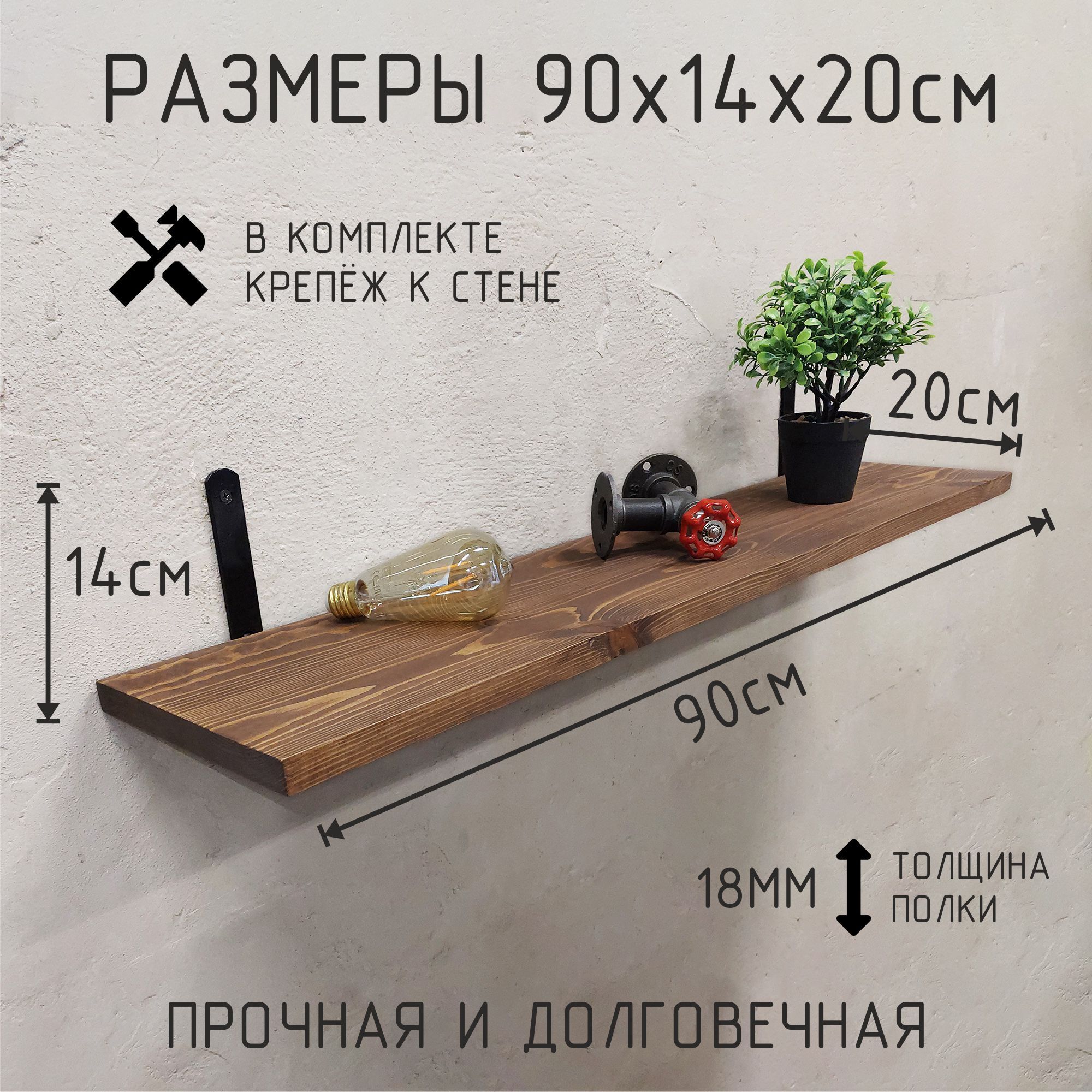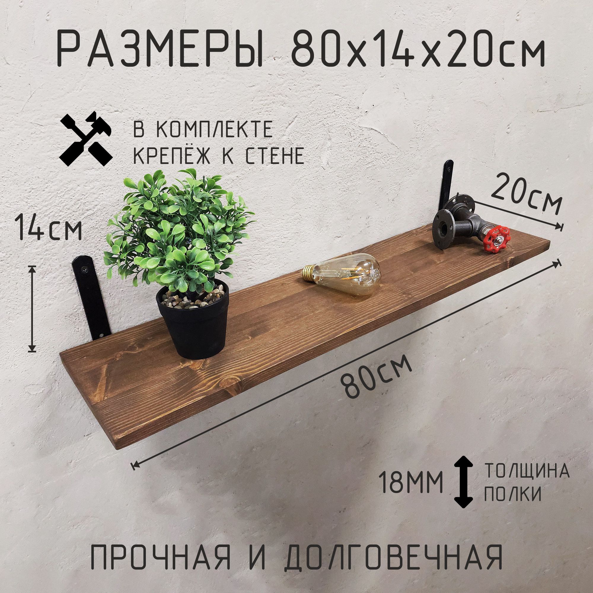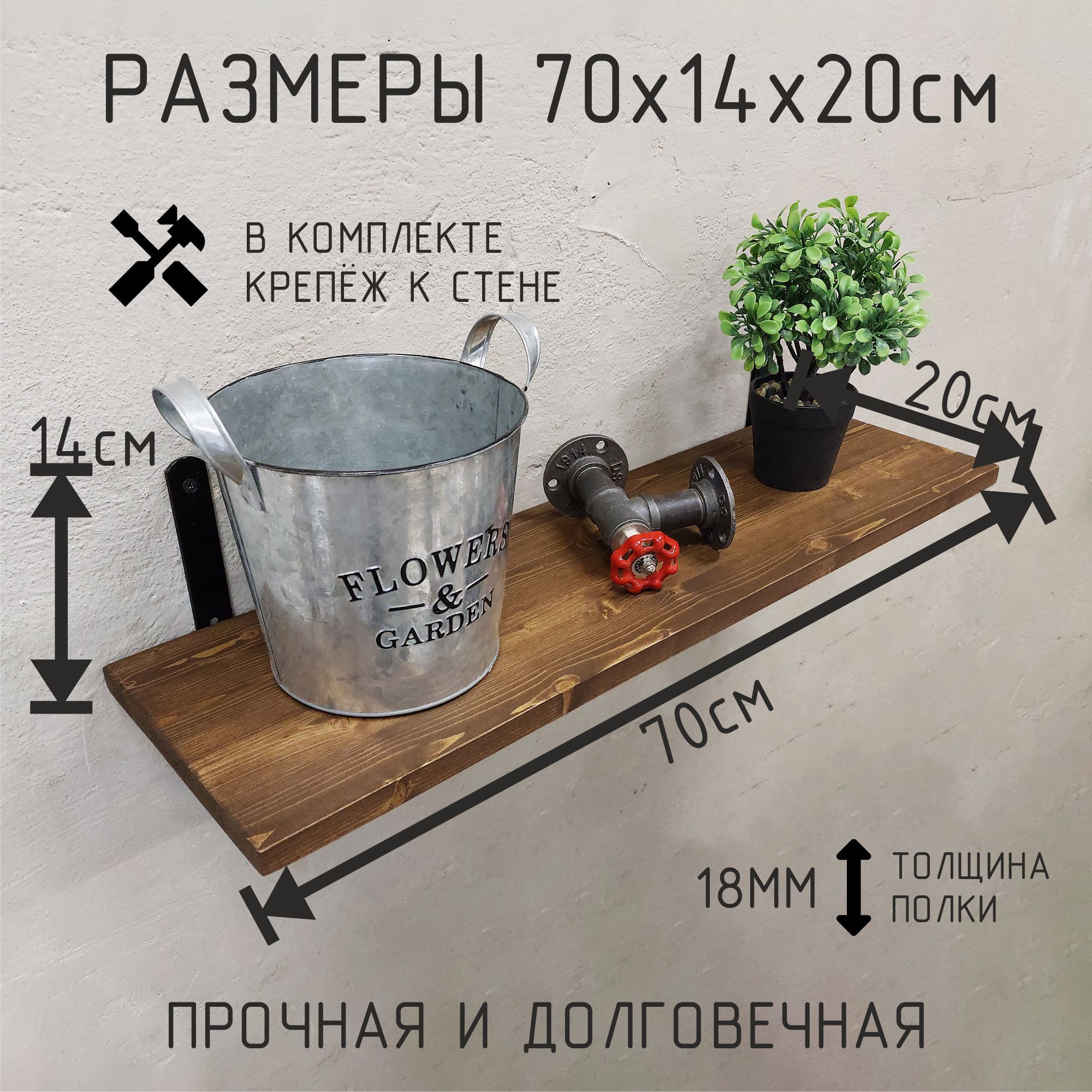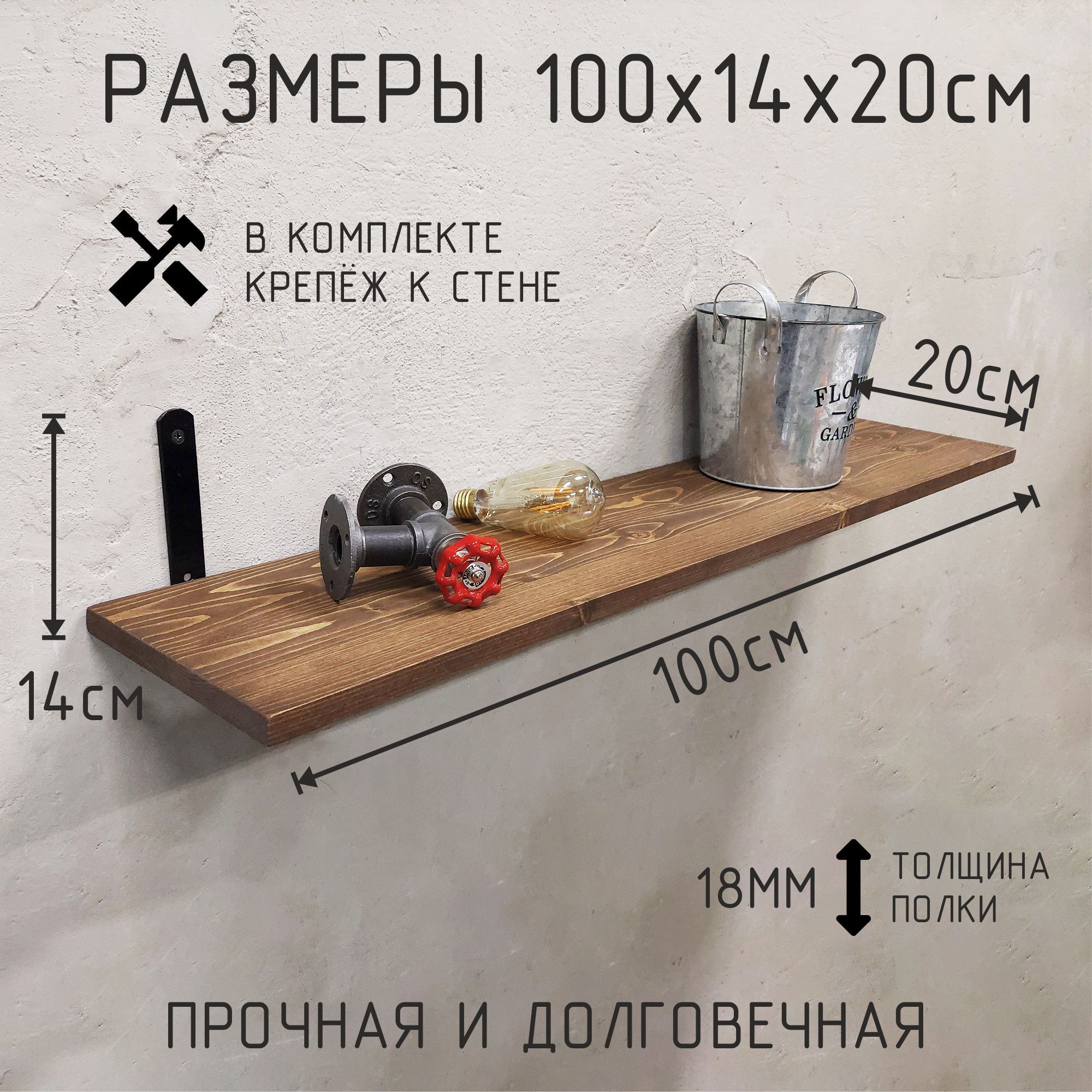 Благодаря настенному креплению, эта полка не займёт много места, но при этом предоставит достаточно пространства для хранения множества предметов. Её стильный и прочный каркас из металла в сочетании с полкой из дерева добавят вашему дому изюминку и подчеркнут индивидуальность вашего интерьера. Такая полка станет не только практическим, но и стильным элементом декора, подчёркивающим ваш утончённый вкус.