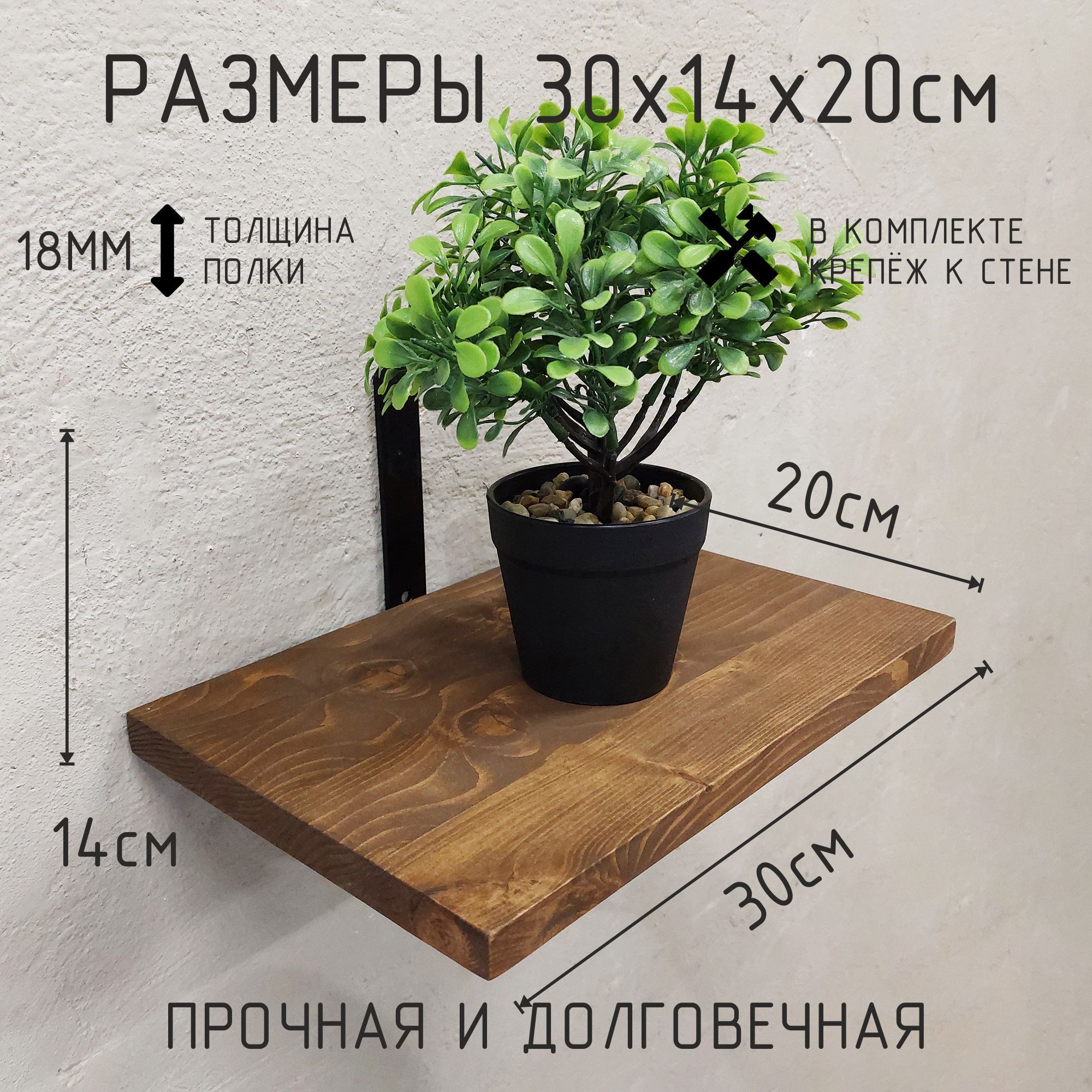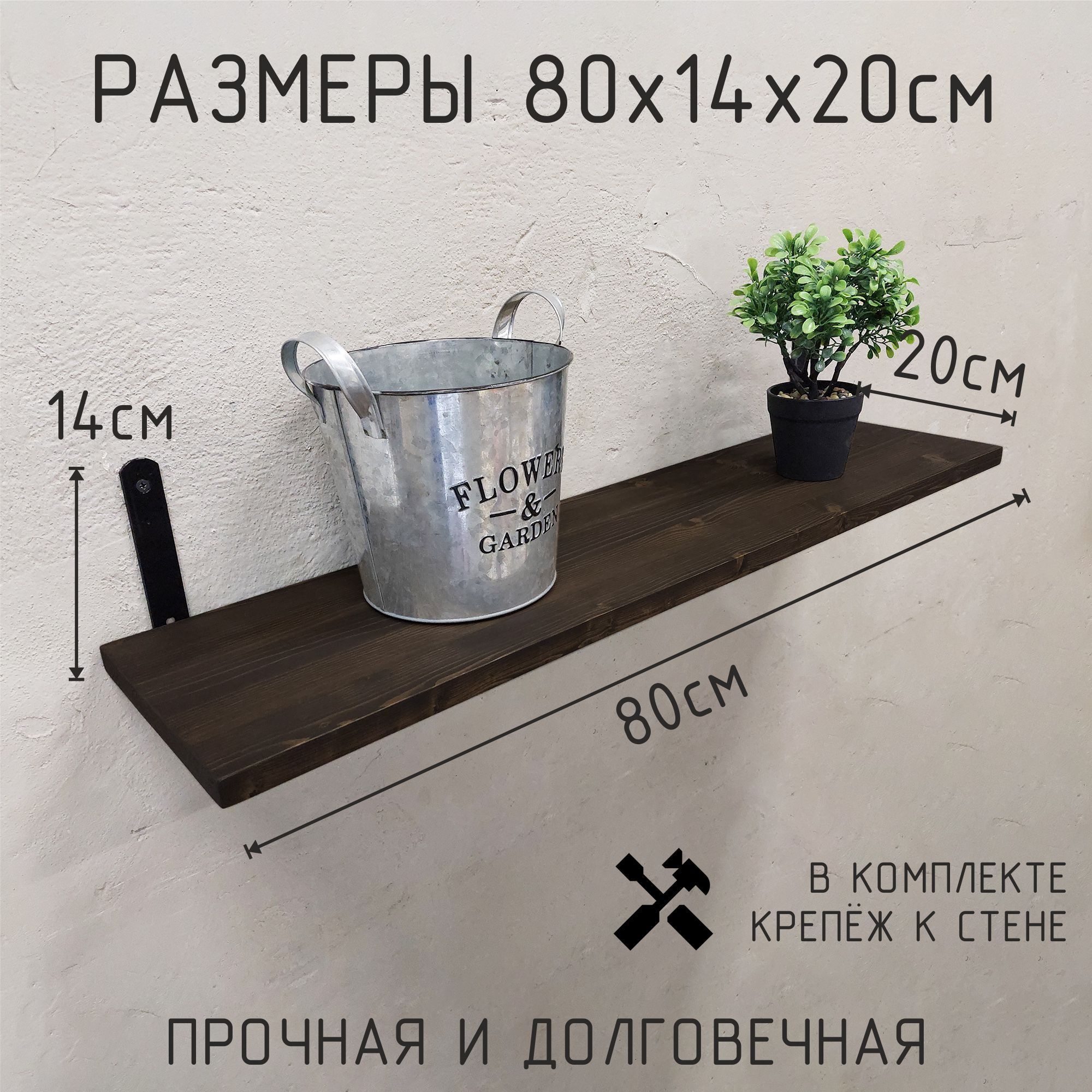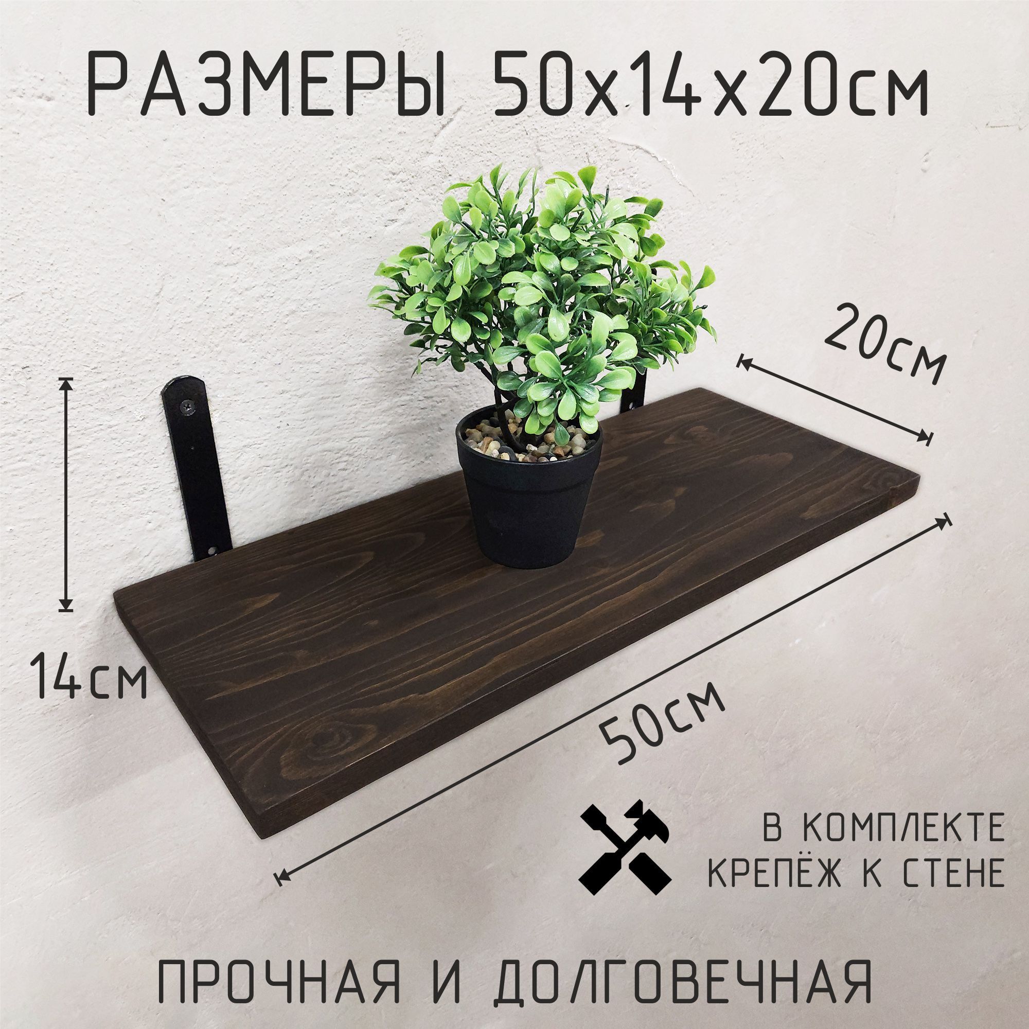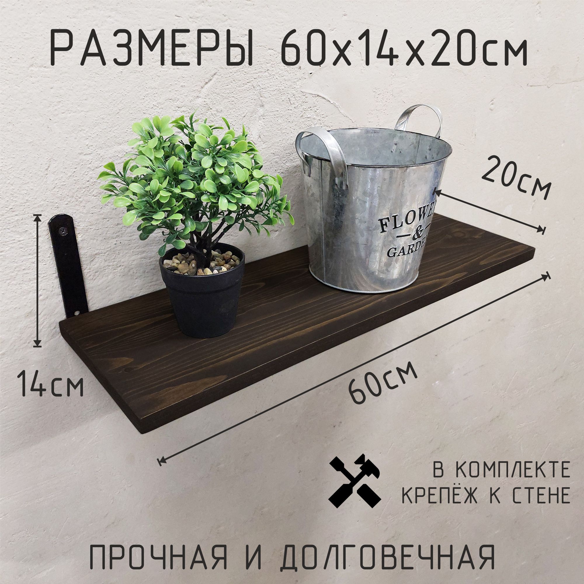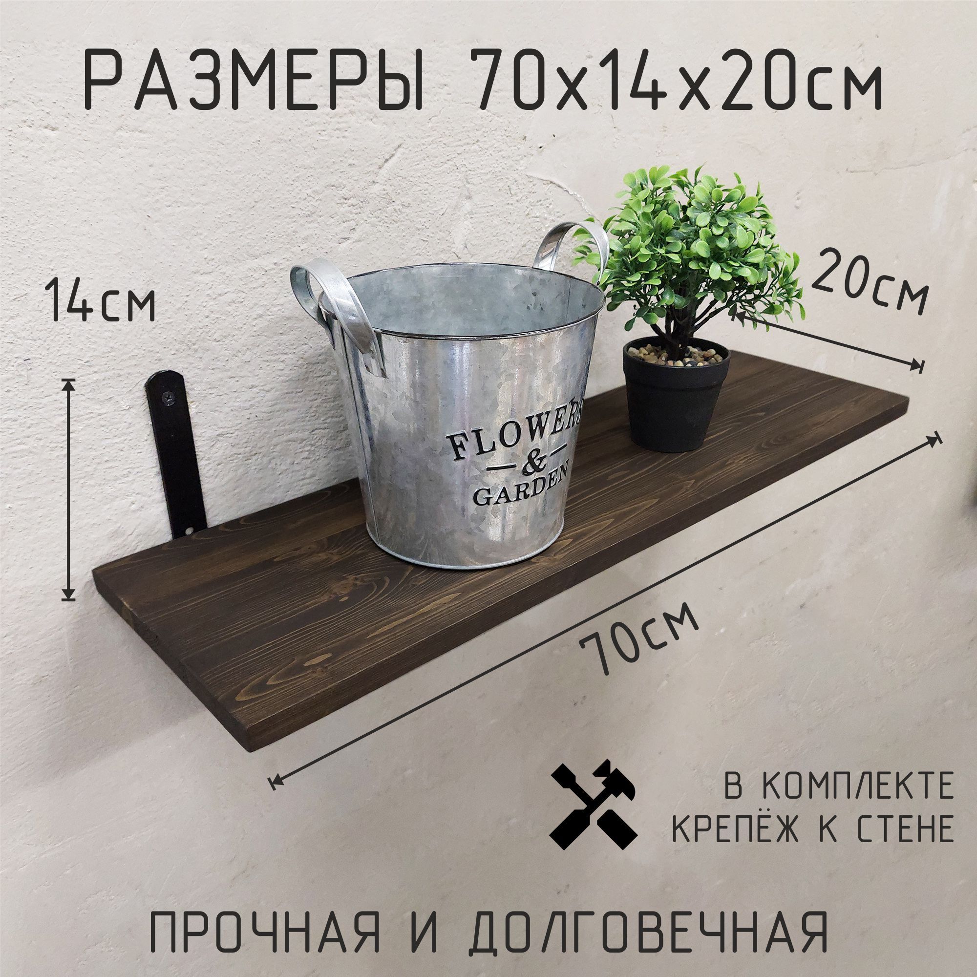 Благодаря настенному креплению, эта полка не займёт много места, но при этом предоставит достаточно пространства для хранения множества предметов. Её стильный и прочный каркас из металла в сочетании с полкой из дерева добавят вашему дому изюминку и подчеркнут индивидуальность вашего интерьера. Такая полка станет не только практическим, но и стильным элементом декора, подчёркивающим ваш утончённый вкус.