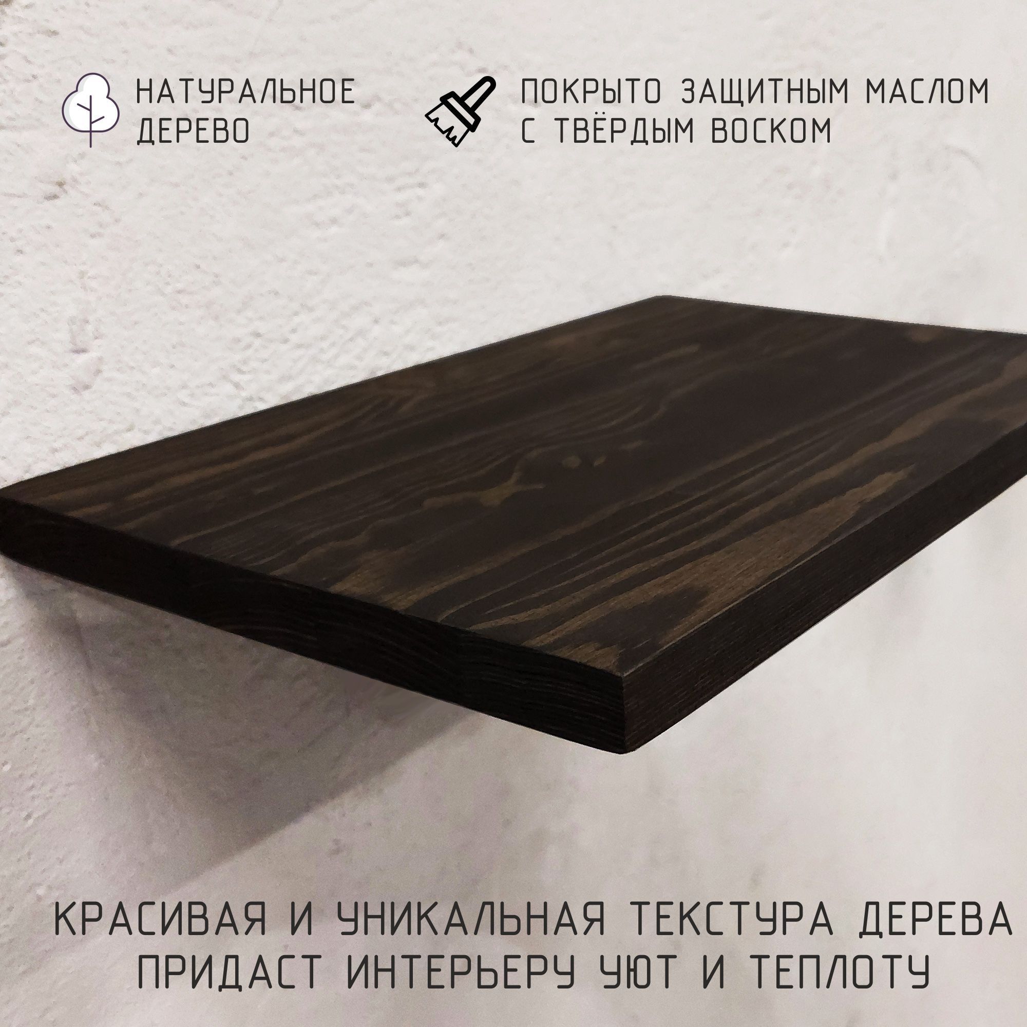 Полка покрыта экологичным маслом с твёрдым воском для дерева.
