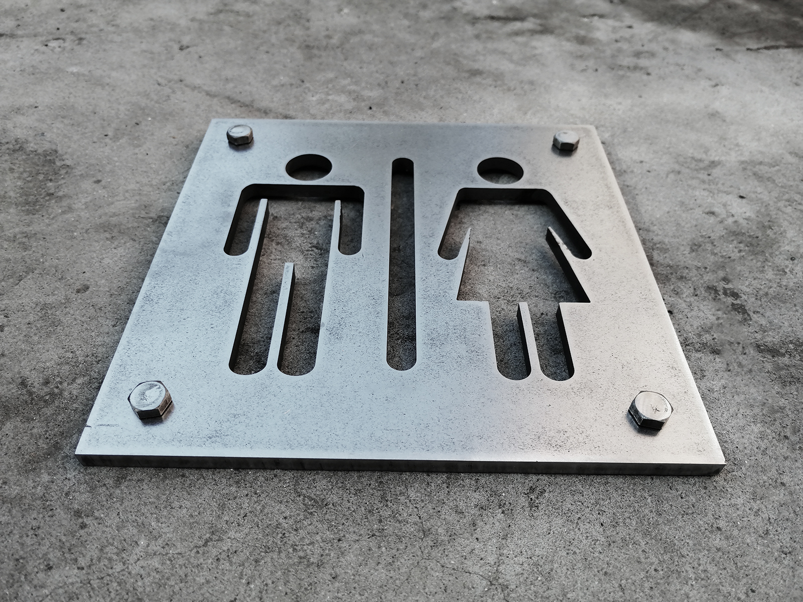 Стальная настенная табличка в стиле лофт с обозначением мужского и женского туалета. Изготовлена из стали 6 мм.