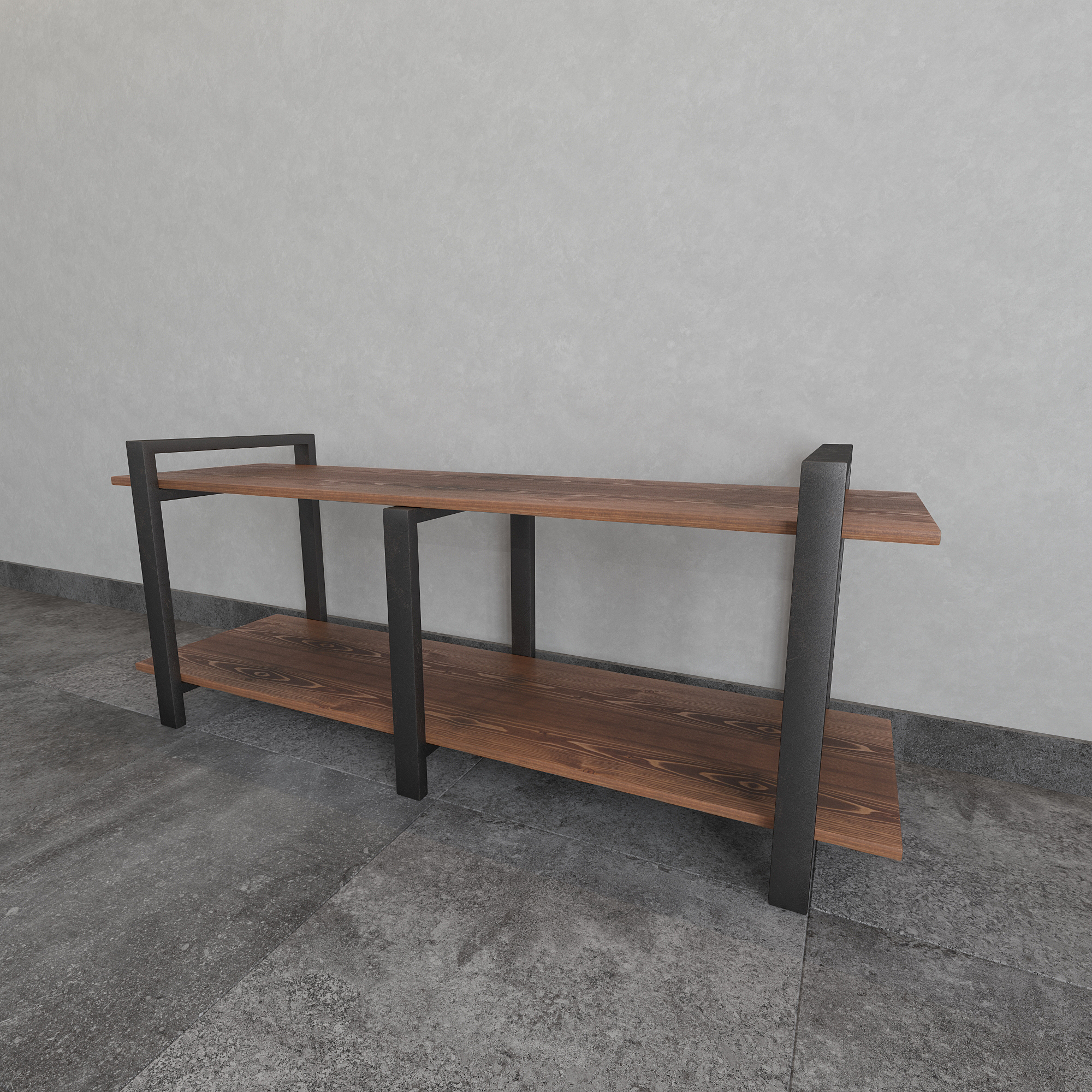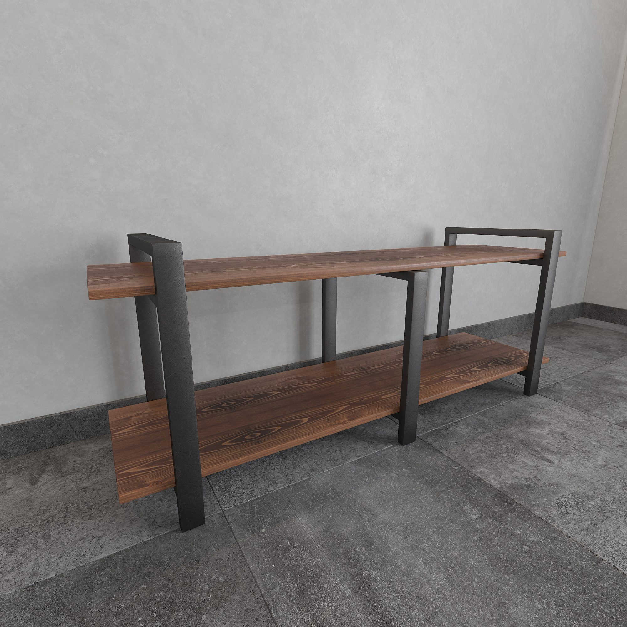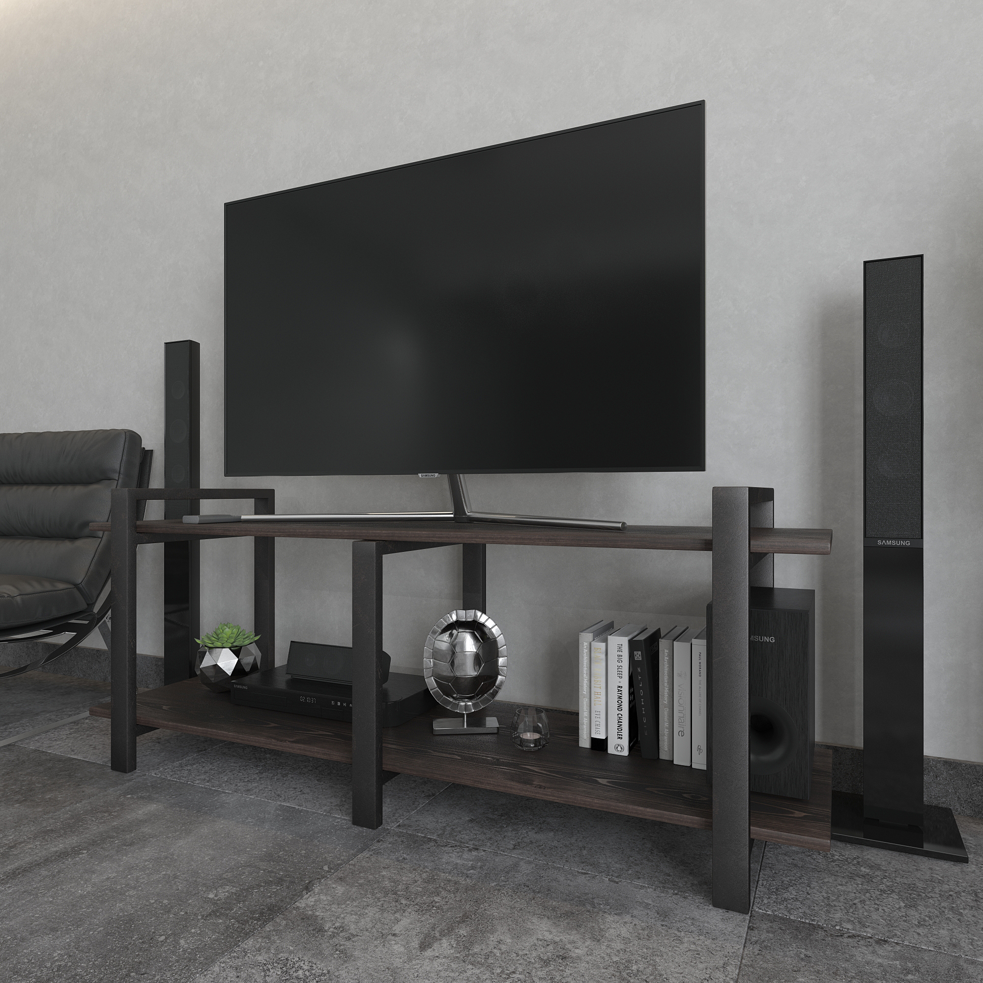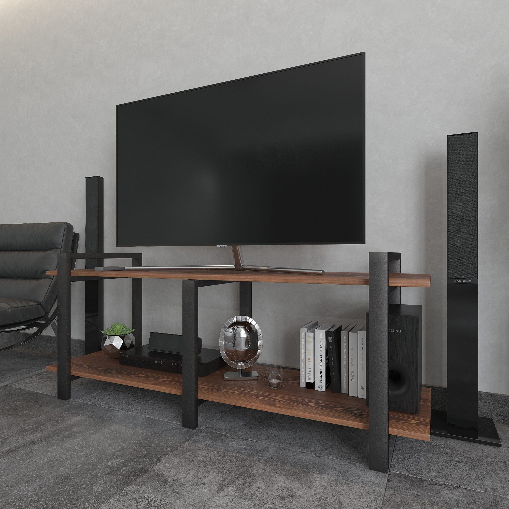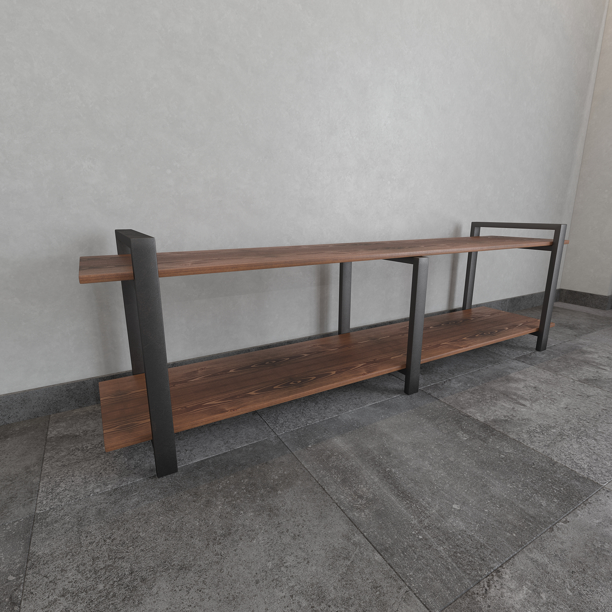 Современная тумба под телевизор из натуральной сосны и стали — функциональное интерьерное решение для гостиной в стиле лофт, минимализм и современный дизайн.
