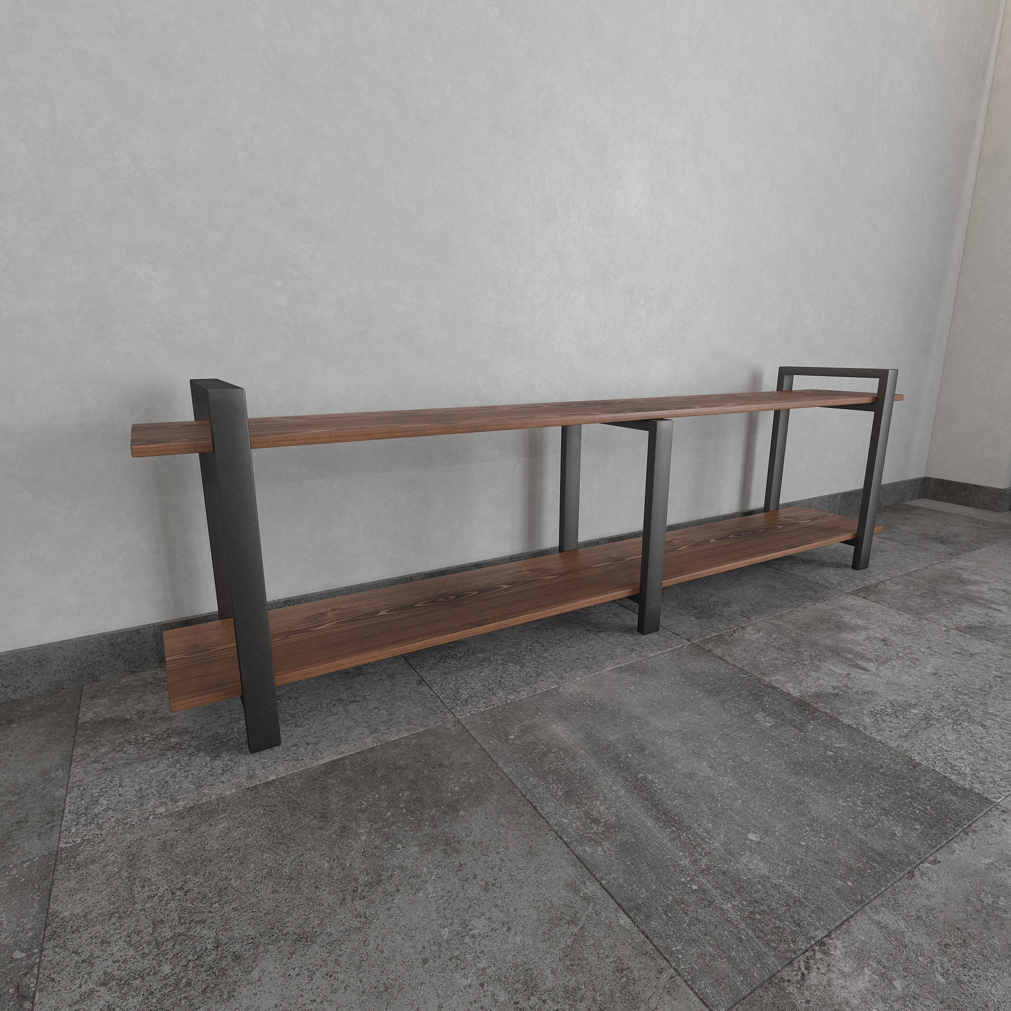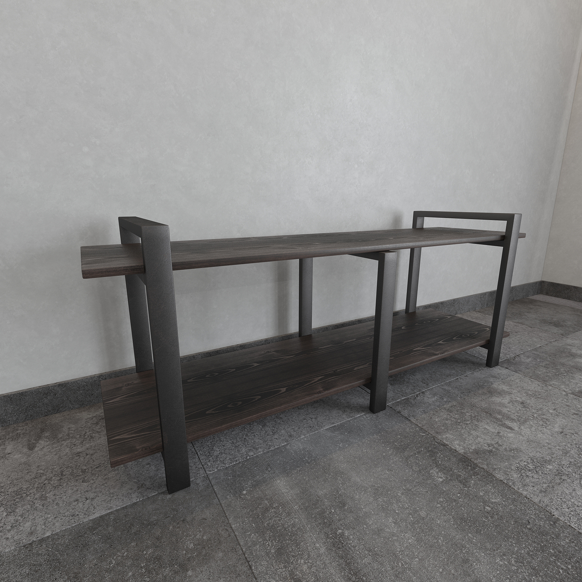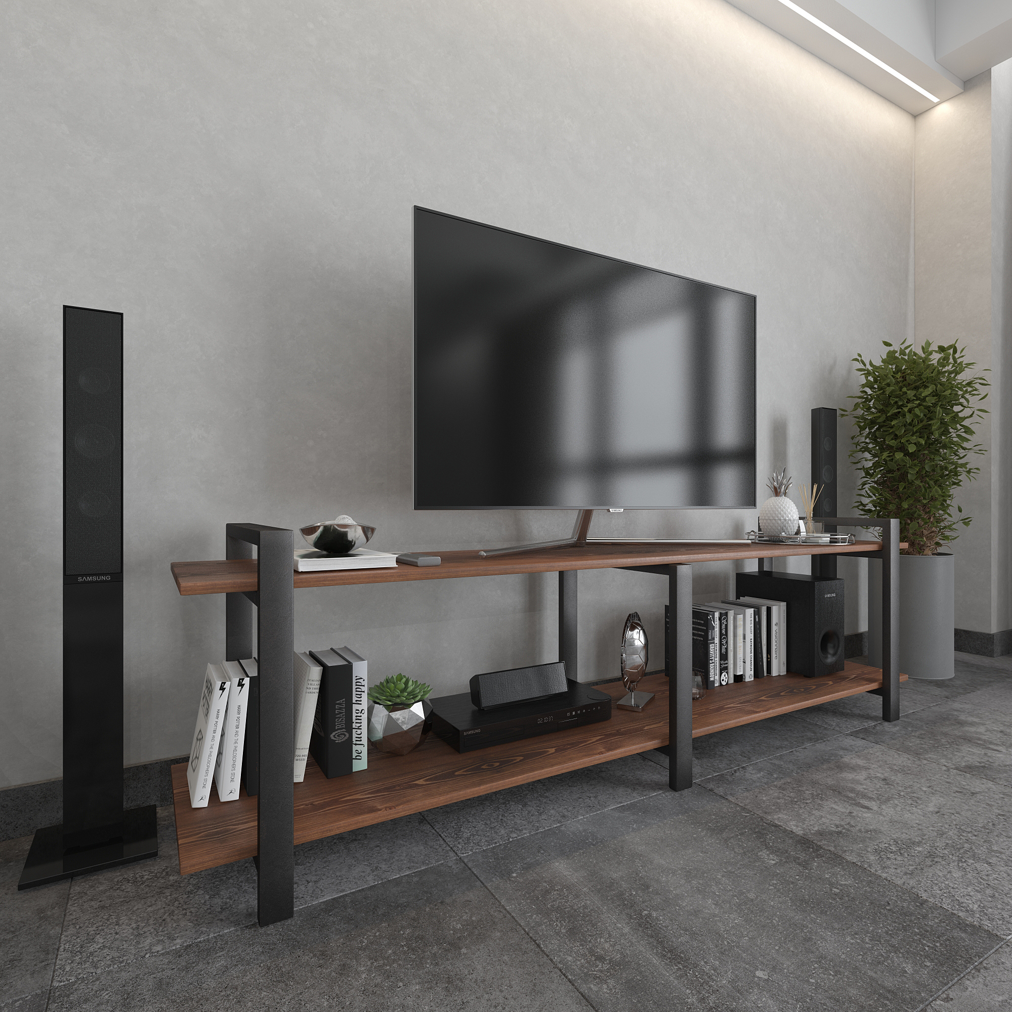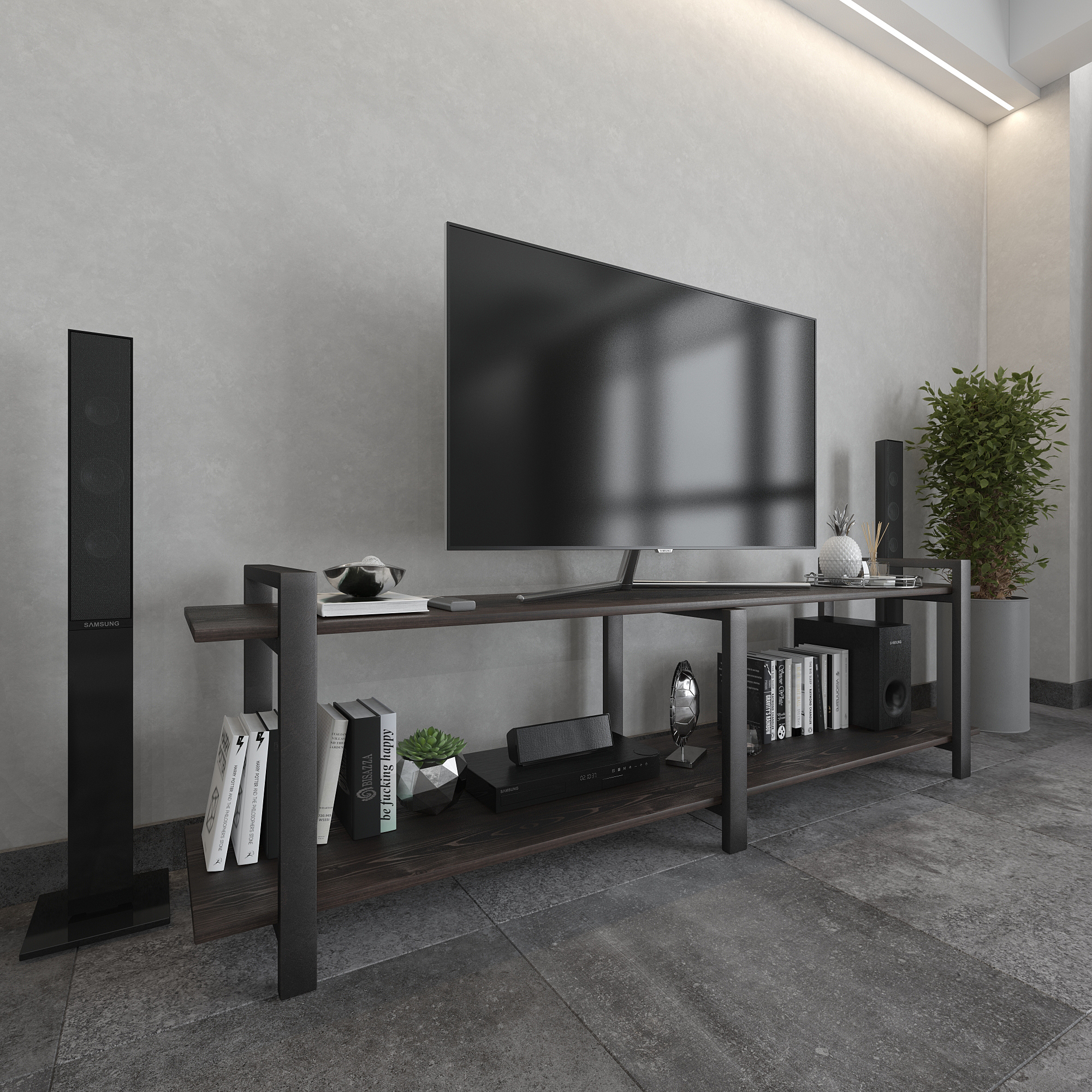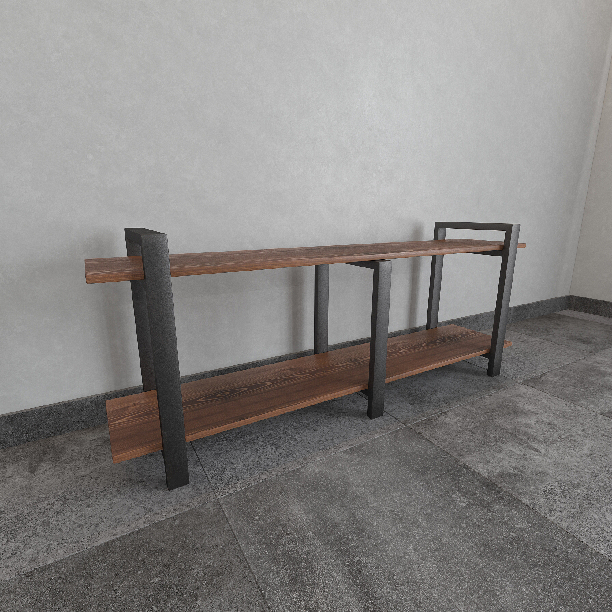 Современная тумба под телевизор из натуральной сосны и стали — функциональное интерьерное решение для гостиной в стиле лофт, минимализм и современный дизайн.